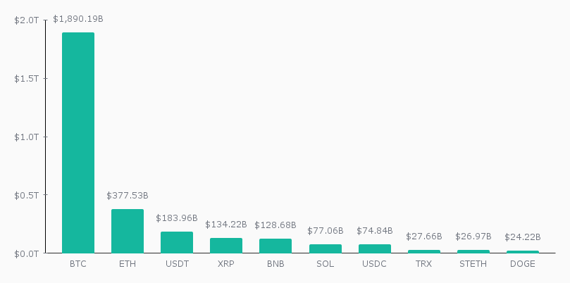Bitcoin, which continues to lead the market, fell from $2.08 trillion to $1.89 trillion, though its dominance held steady, with market share edging only from 57.6% to 57.2%. This indicates that the selloff was broad-based rather than concentrated in Bitcoin specifically.