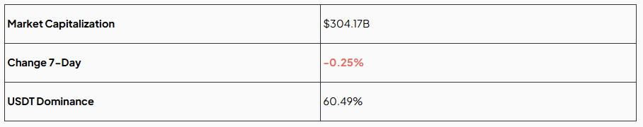 The stablecoin market showed minimal movement this week, with total market capitalization holding near $304.17 billion. The slight 0.25% decline over the past seven days indicates a relatively steady environment, especially compared with the broader volatility seen across major cryptocurrencies. This stability suggests that investors have not significantly shifted funds out of or into stablecoins, reinforcing their role as a parking place during uncertain market conditions.