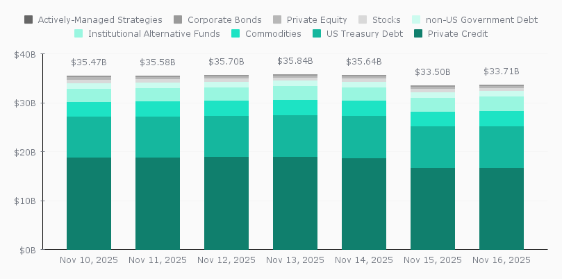 Institutional alternative strategies remained stable. The Janus Henderson Anemoy AAA CLO Fund (JAAA) saw only minimal movement, rising 0.1% and maintaining a market cap near $1.01 billion. This stability reflects the relatively predictable nature of tokenized CLO exposure.