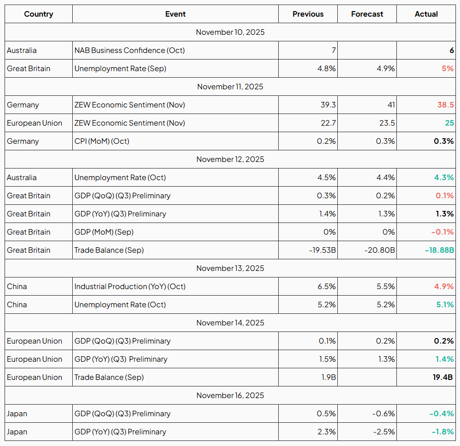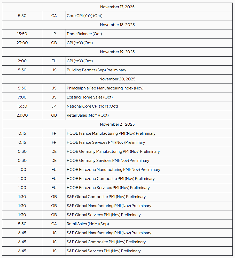 Next week, market attention will turn to fresh inflation readings from the U.K. and the Eurozone, offering updated insight into price pressures across major economies. In the U.S., investors will closely watch the release of the FOMC Meeting, alongside key activity indicators such as the Philadelphia Fed Manufacturing Index and Existing Home Sales. Toward the end of the week, PMI figures for both U.S. manufacturing and services will provide an important read on economic momentum heading into year-end.