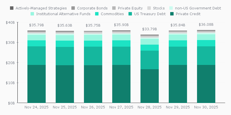 Other categories experienced more pronounced momentum. Tokenized commodities grew 4.1%, reflecting firm investor appetite for digital representations of physical assets, particularly during periods of macro uncertainty. The strongest expansions occurred in tokenized stocks and private equity, which rose 8.5% and 9.2%, respectively. These gains point toward renewed interest in tokenized equity-like exposures, potentially driven by broader market recoveries or increased activity from tokenization platforms bringing new assets on-chain.