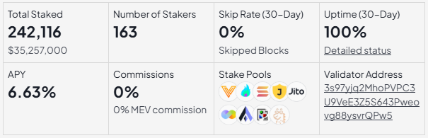 - Zero fees: 0% validator commission - you keep 100% of your earned SOL.