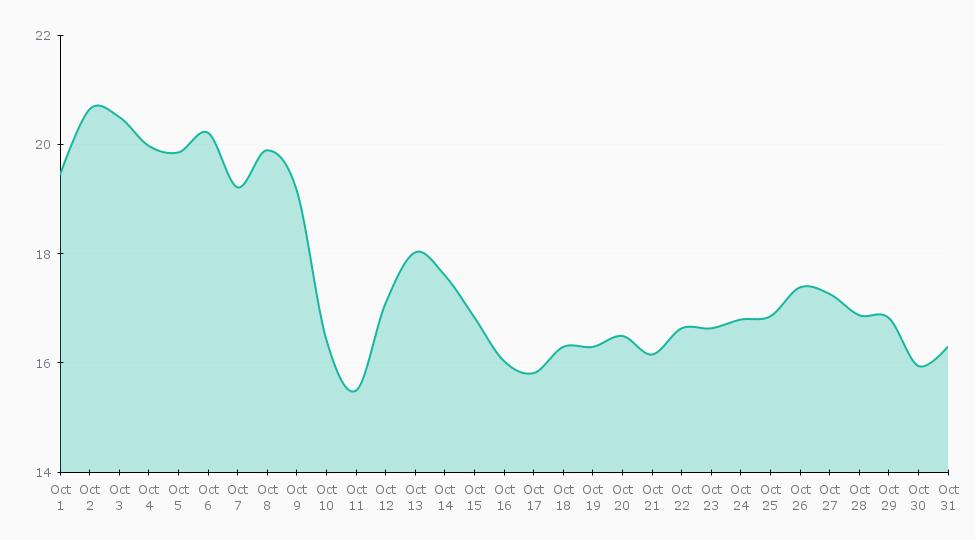After a stable first week, liquidity tightened sharply around October 10-11, when it fell from approximately $19 million to $15.5 million, coinciding with a period of heightened volatility and heavy trading volumes. Conditions gradually improved in the second half of the month, with liquidity rebounding toward $17 million and stabilizing within a $16-17 million range through the end of October.