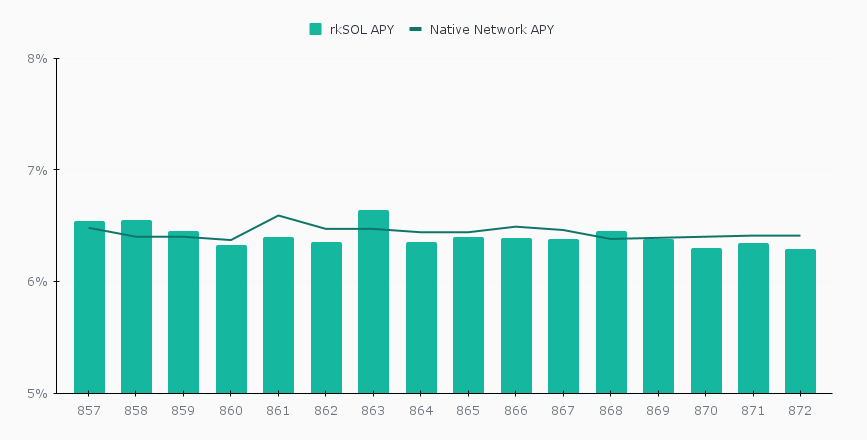 This section reviews rkSOL's performance over recent epochs, focusing on its annual percentage yield (APY) and how it evolved in relation to network-wide staking trends.
